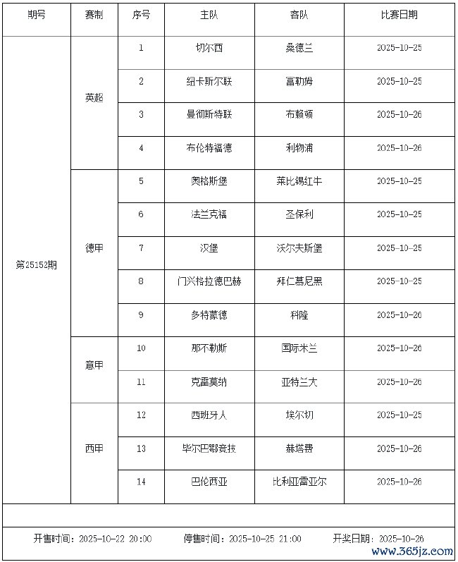 附件2. 足球彩票输赢游戏(14场和任选9场)第25152期